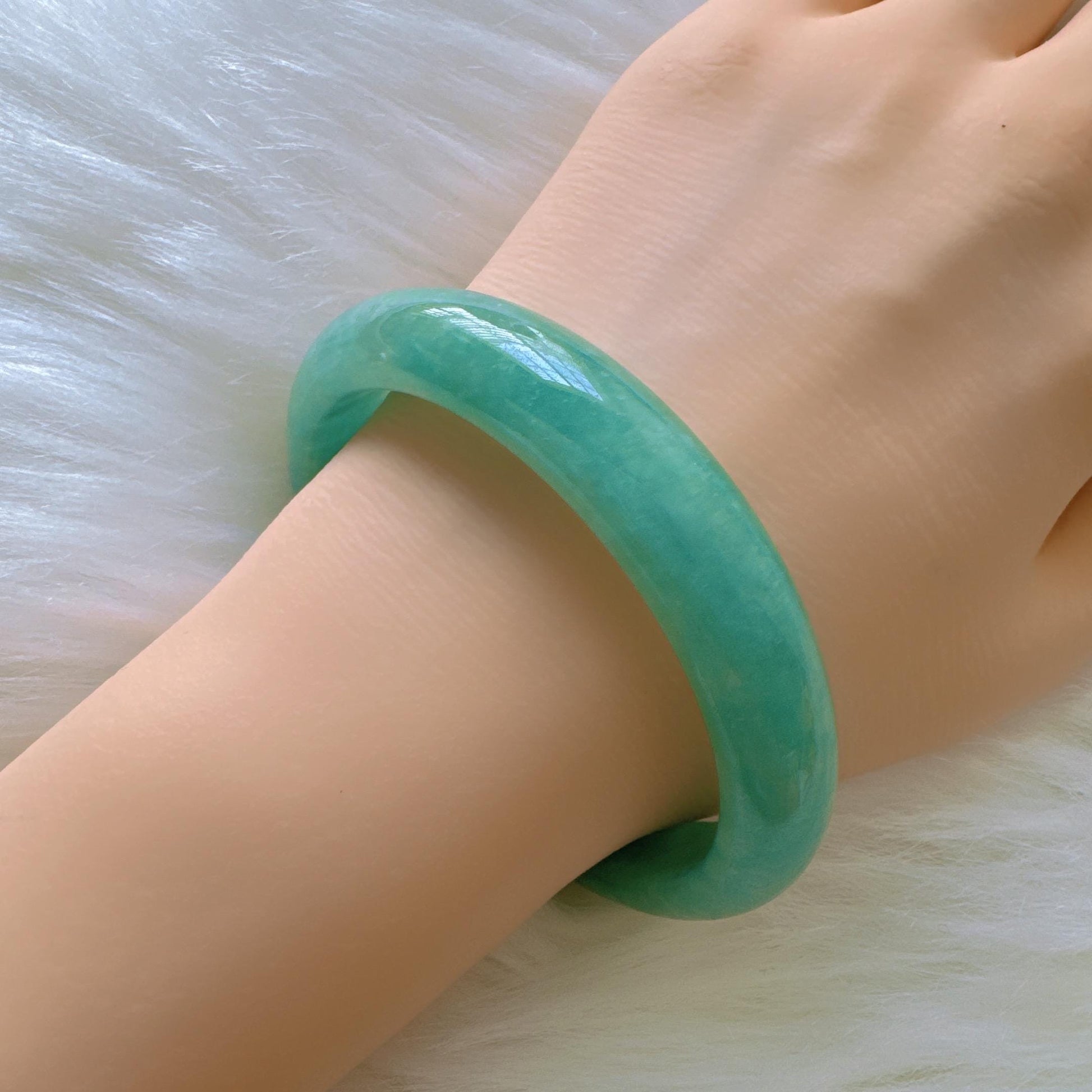 Sourced from Burma Jadeite stone, this bangle showcases beautifully enhanced color and clarity, highlighting jade’s beauty while ensuring a smooth, polished finish.