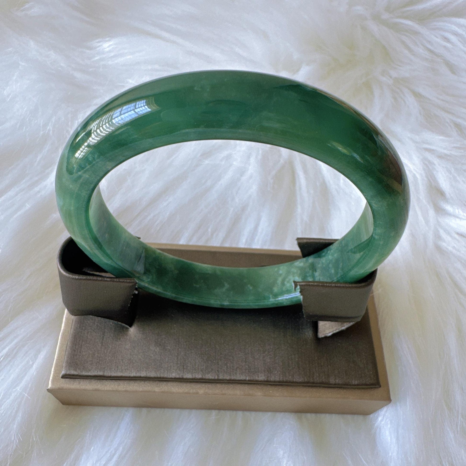 Sourced from Burma Jadeite stone, this bangle showcases beautifully enhanced color and clarity, highlighting jade’s beauty while ensuring a smooth, polished finish.