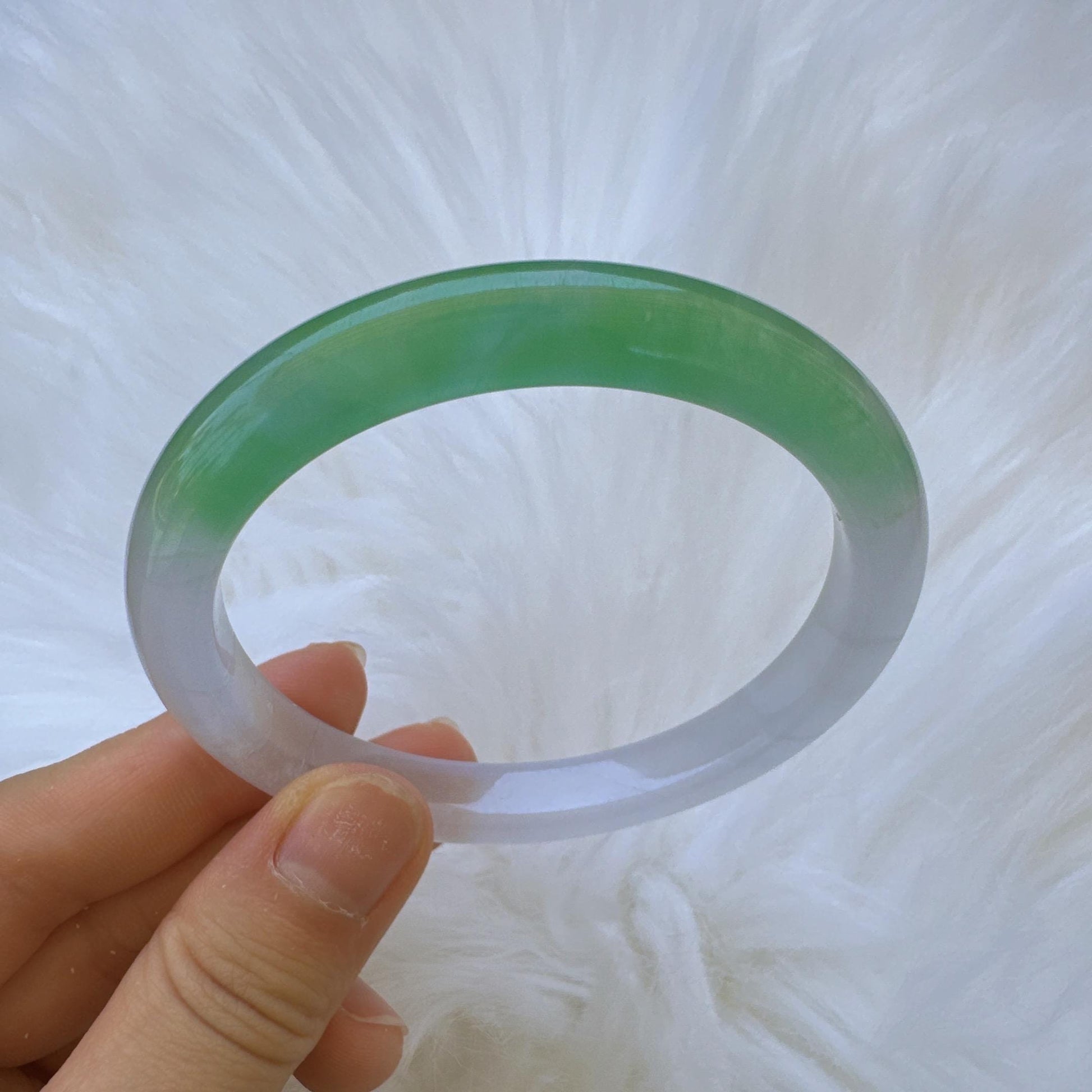 Sourced from Burma Jadeite stone, this bangle showcases beautifully enhanced color and clarity, highlighting jade’s beauty while ensuring a smooth, polished finish.