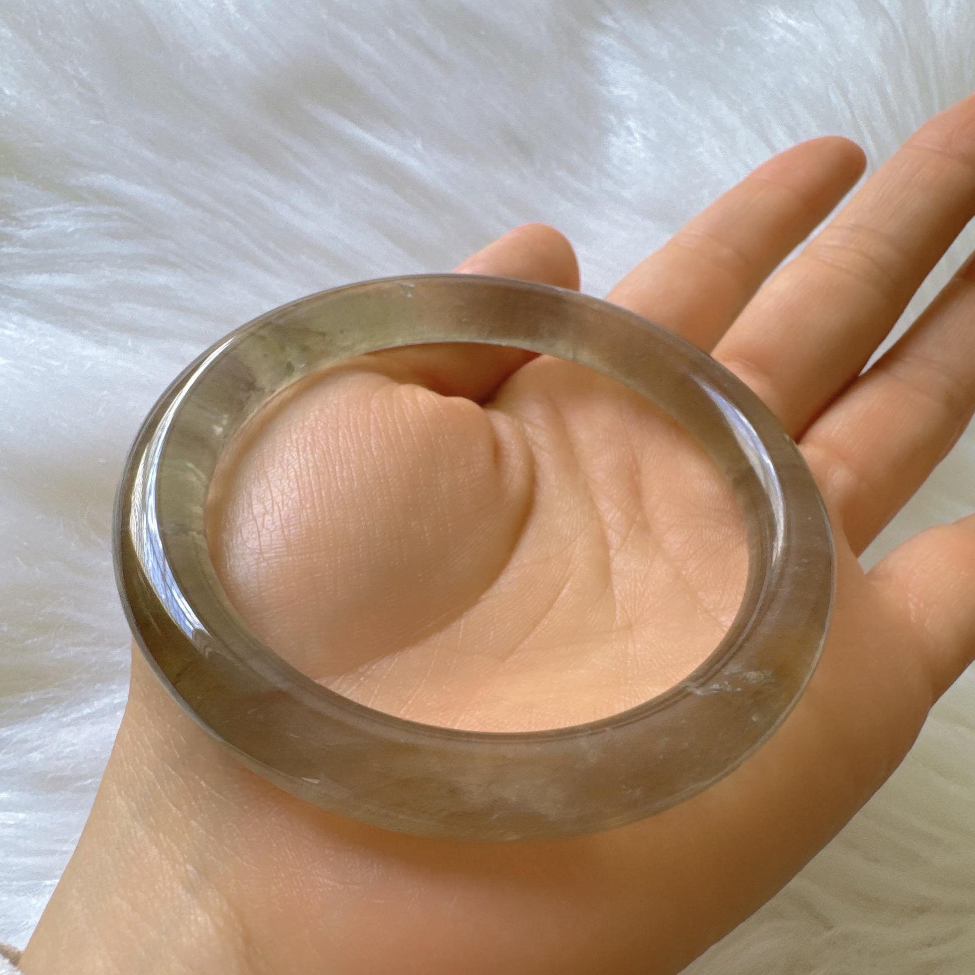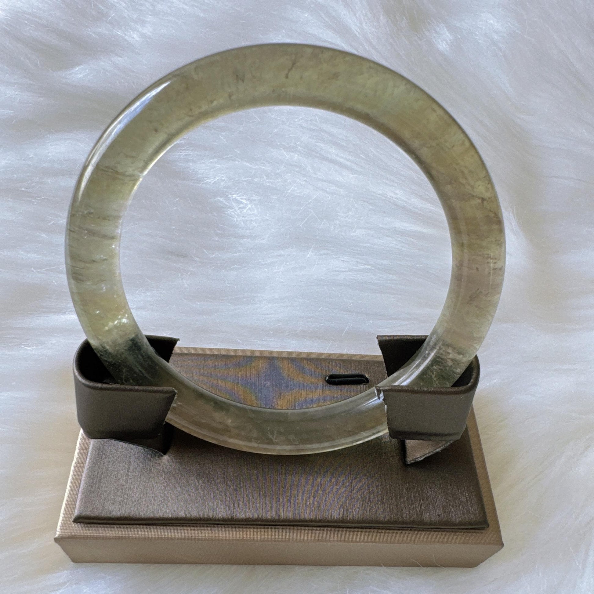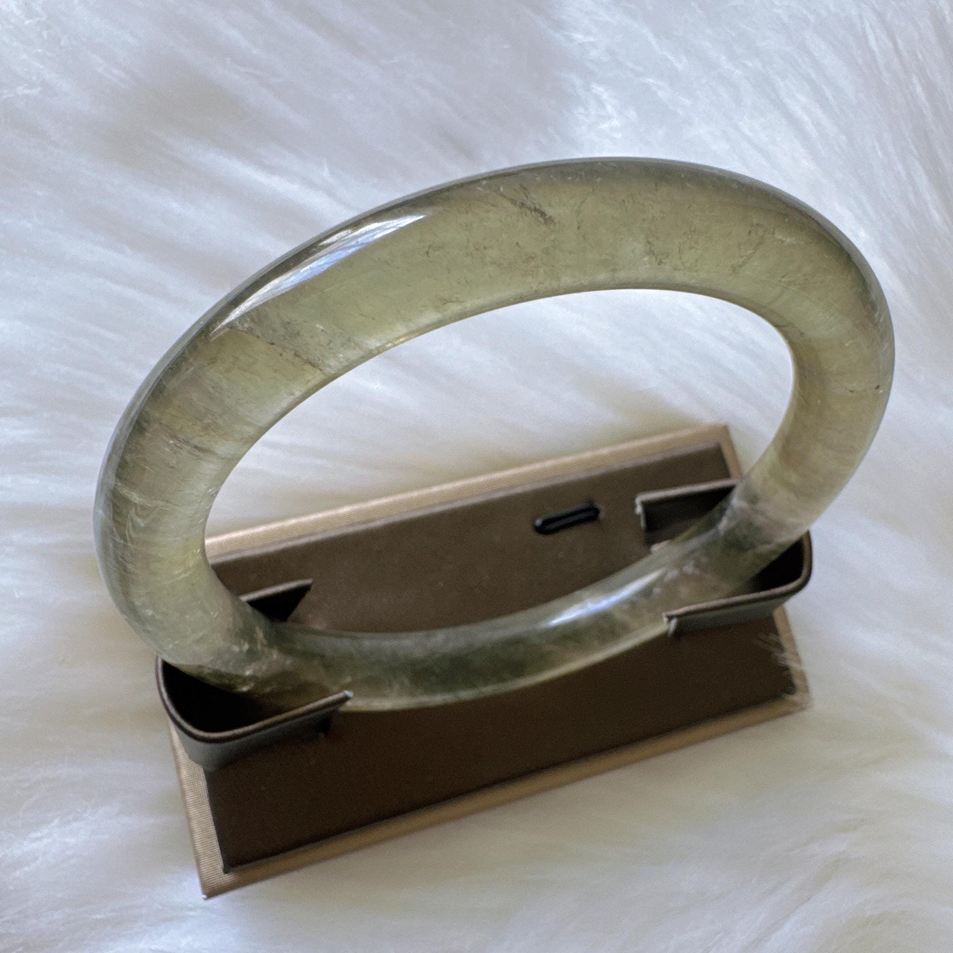 Forest Soul – Forest Green Ghost Phantom Quartz Gemstone Bangle, Green Ghost Quartz Crystal Bangle