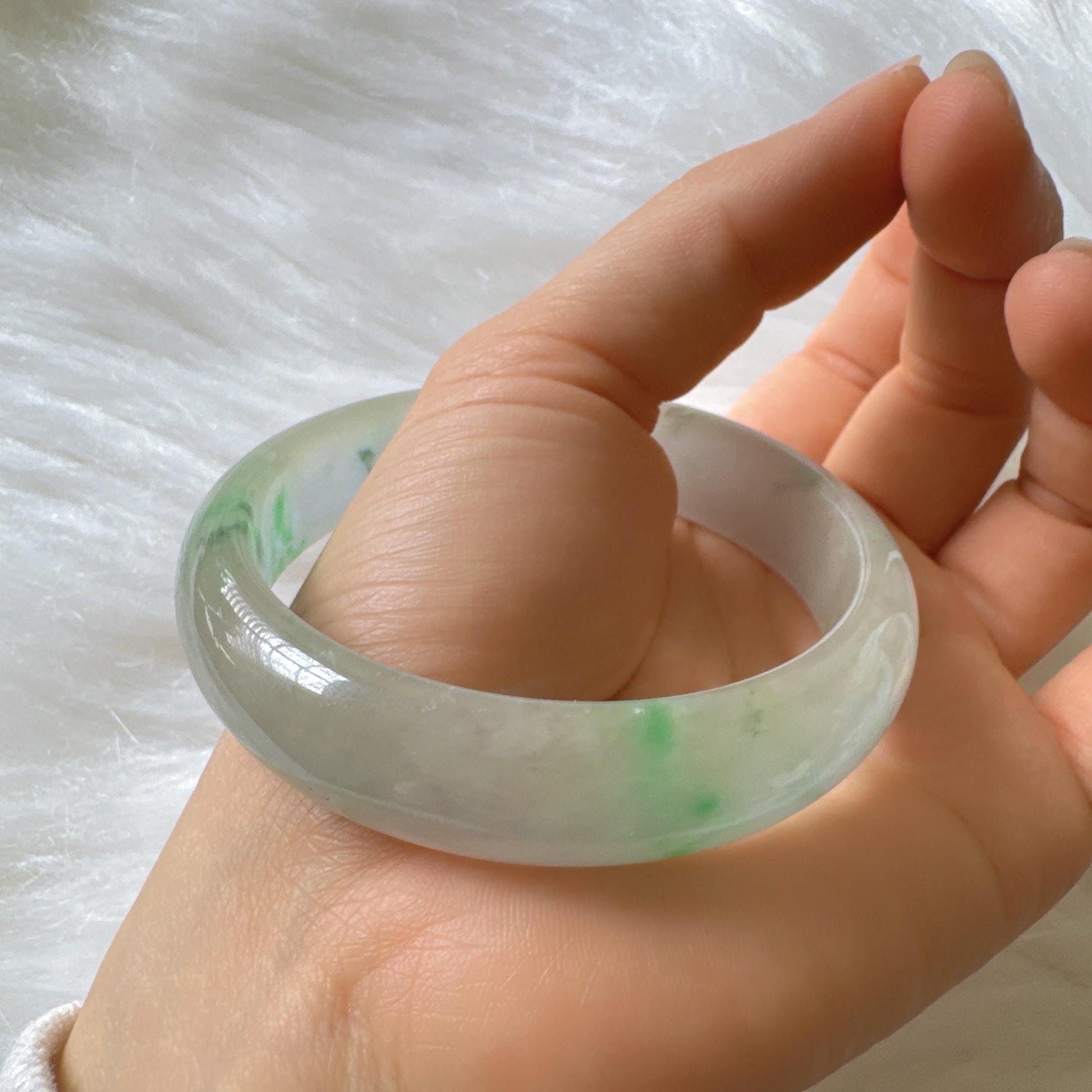 Sourced from Burma Jadeite stone, this bangle showcases beautifully enhanced color and clarity, highlighting jade’s beauty while ensuring a smooth, polished finish.